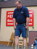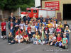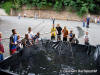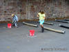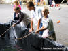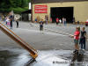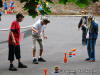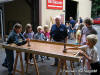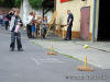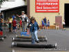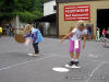 Geschicklichkeit war nicht nur bei diesem Spiel gefragt. Vier Personen müssen -durch die Schnur gehalten- den Tennisball auf den anderen Stab setzen.