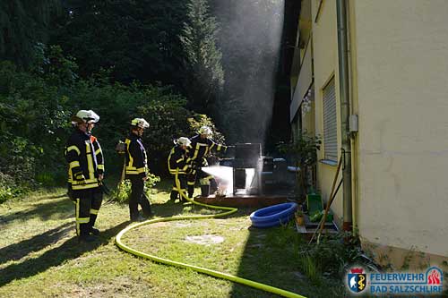 Am Samstagnachmittag wurde die Feuerwehr Bad Salzschlirf um 17:19 Uhr mit dem Stichwort "F1- Brand im Freien" alarmiert. Beim Eintreffen an der Einsatzstelle stand ein Gasgrill unter einem Balkon im Vollbrand. Die Einsatzkräfte mussten den Gasgrill unter dem Balkon herausziehen, um ein Übergreifen des Feuers auf den Balkon zu verhindern. Ein Trupp löschte das Feuer mit einem C-Rohr und kühlte anschließend die Gasflasche. Die Feuerwehr Bad Salzschlirf war mit 4 Fahrzeugen und 16 Einsatzkräften unter der Leitung von Gemeindebrandinspektor Jürgen Schlei im Einsatz.