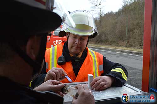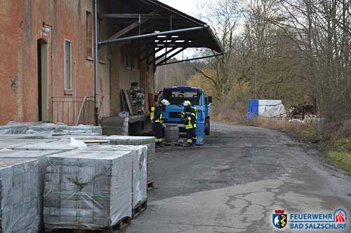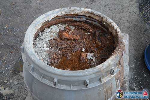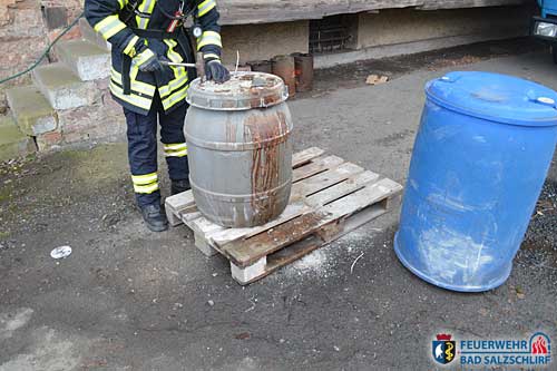 Am Samstagmittag wurde die Feuerwehr Bad Salzschlirf um 14:27 Uhr mit dem Stichwort "H Gefahr 1 - Austritt von Gefahrgut" alarmiert. Am Bahnhof in Bad Salzschlirf wurde illegal ein 100 Liter Fass und ein 200 Liter Fass mit unbekanntem Inhalt entsorgt. Aus einem Fass trat eine unbekannte Flüssigkeit aus. Die Einsatzkräfte sperrten die Einsatzstelle weiträumig ab und kontrollierten unter Atemschutz die Fässer. Nach dem Eintreffen des Gerätewagen-Gefahrgut der Feuerwehr Großenlüder wurden Proben der Stoffe entnommen. Die Proben ergaben, dass sich in dem einen Fass ein Gemisch aus Bauschutt, Öl und Sägespänen befand. Nach Öffnung des zweiten Fasses konnte in diesem Diesel festgestellt werden. Anschließend wurde die Einsatzstelle mit Bindemittel abgestreut. Die Feuerwehr Bad Salzschlirf war mit 6 Fahrzeugen und 29 Einsatzkräften im Einsatz. Die Einsatzleitung oblag dem stellvertretenden Gemeindebrandinspektor Peter Krack.