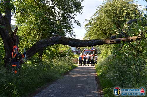 Am Sonntagnachmittag wurde die Feuerwehr Bad Salzschlirf um 17:58 Uhr mit dem Stichwort "H1 - Baum auf Fahrbahn" alarmiert. Mittels Kettensäge wurde der Seitenarm des Baumes entfernt und anschließend die Fahrbahn gereinigt.