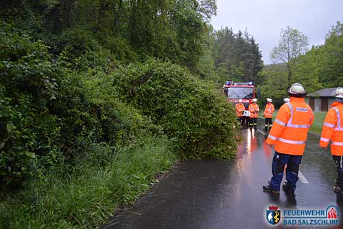 Die Feuerwehr Bad Salzschlirf wurde am Dienstmorgen um 07:10 Uhr mit dem Stichwort "H1 - Baum auf Fahrbahn" alarmiert. Der Baum wurde mittels Motorkettensäge entfernt und anschließend die Fahrbahn gereinigt.
